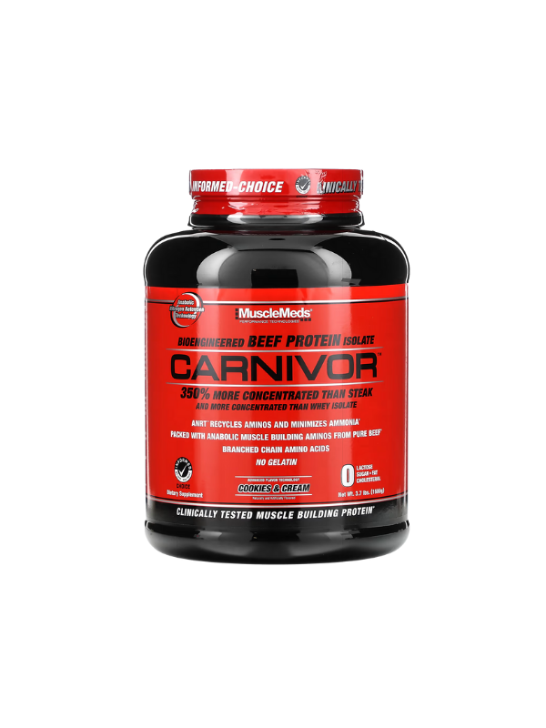 Proteína de carne de alta tecnología, sin lactosa ni azúcar. Apoya la ganancia muscular magra y mejora la recuperación. Fórmula anabólica con fuerza salvaje.