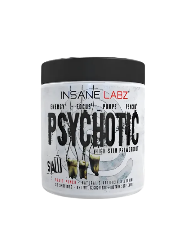 ¿QUIERES JUGAR UN JUEGO? Psychotic SAW es el pre-entrenamiento más LOCO jamás realizado por el Mad Chemist y su equipo en Insane Labz. ¡Han empacado la fórmula LLENA de ingredientes que trabajan juntos para darte todo lo que necesitas para MATARlo en el gimnasio! A continuación, expande cada uno de estos ingredientes para aprender lo que hace que Psychotic SAW sea diferente a cualquier preentrenamiento que hayas probado.